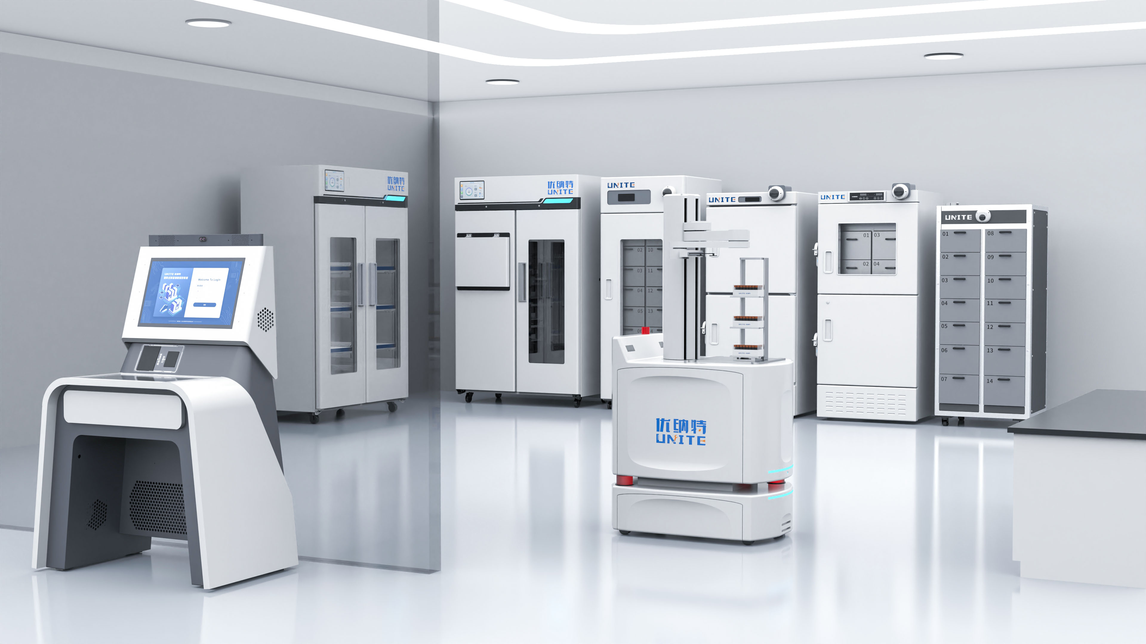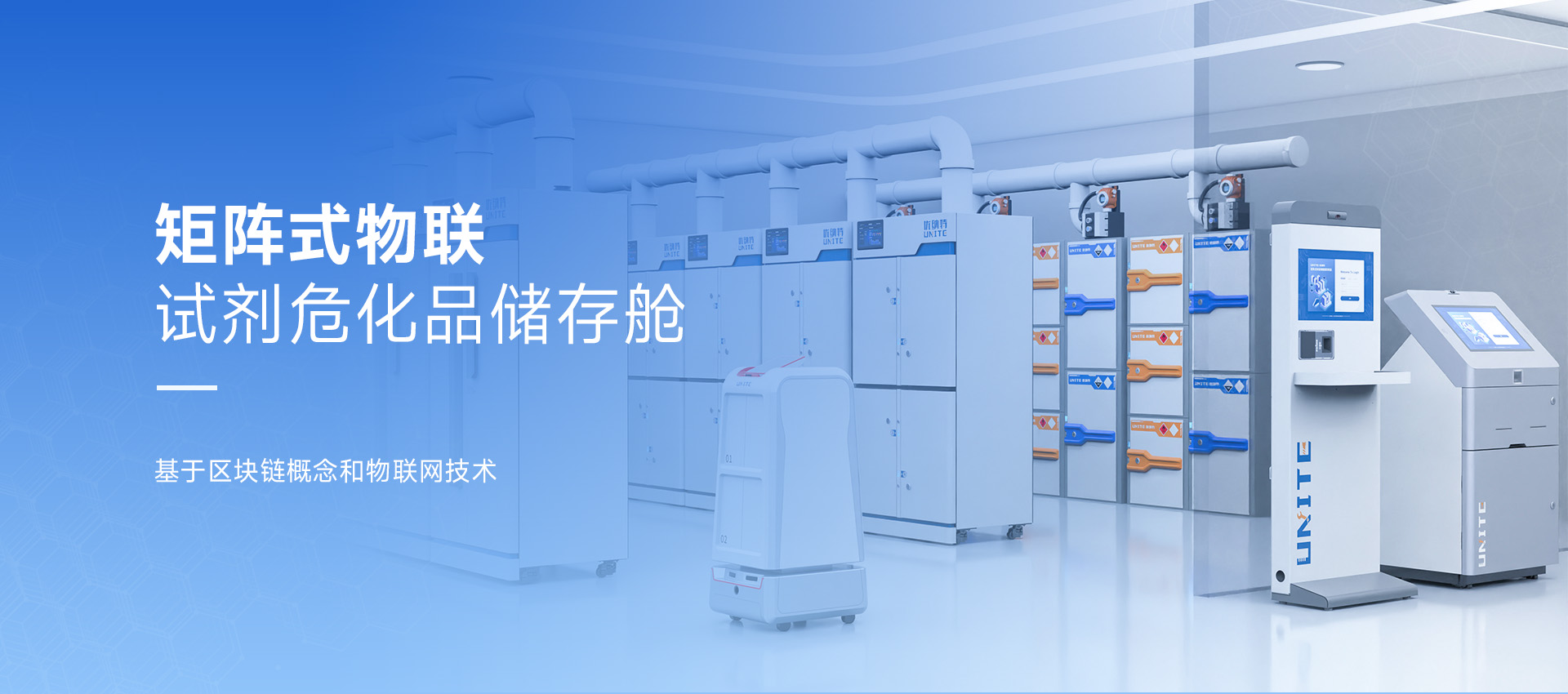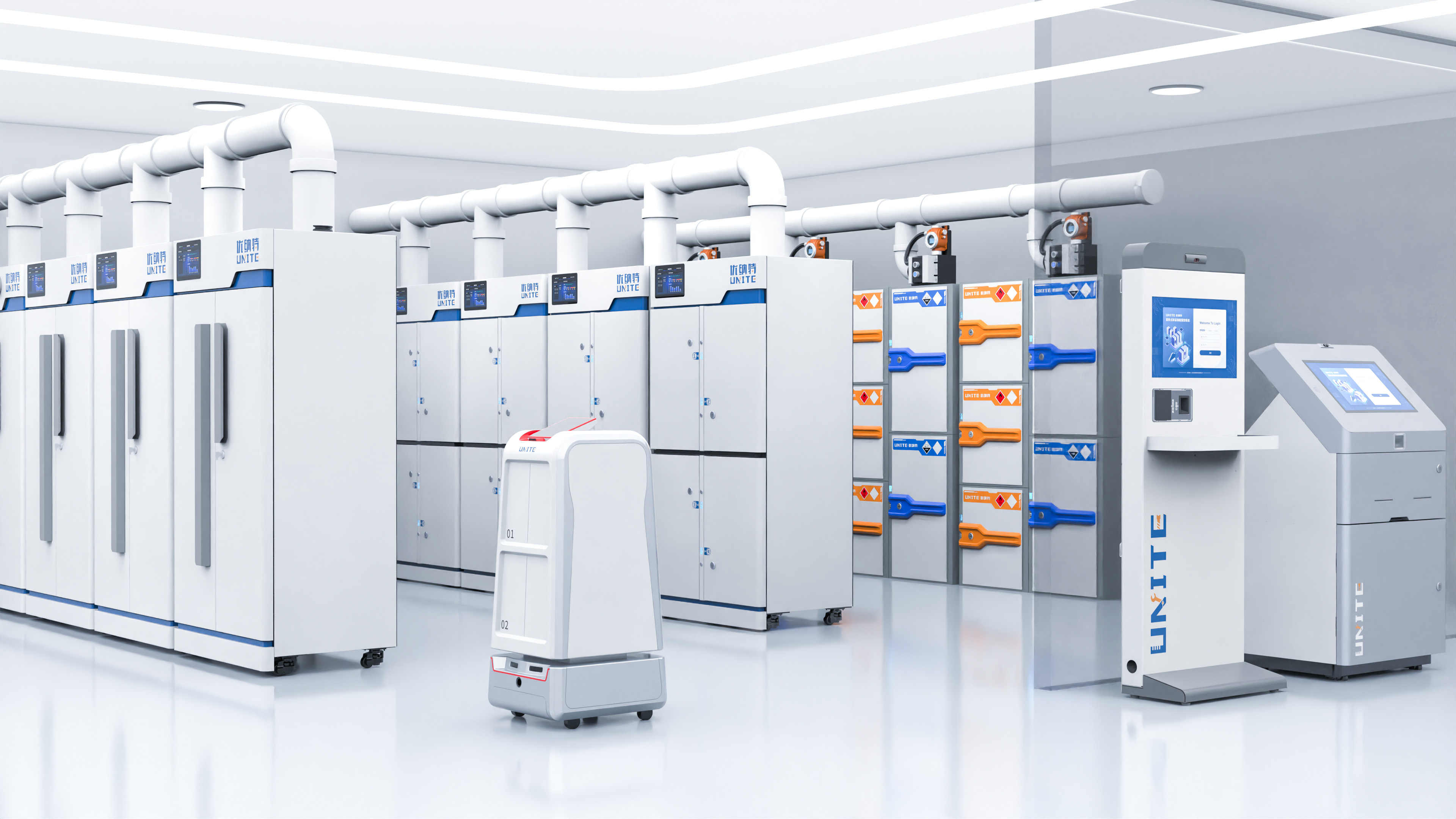 浙江優納特自主創新研發矩陣式物聯儲存艙,涵蓋試劑?;贰藴势?標準菌、生物樣本、數字孿生數據、自動化無人實驗室、智慧實驗室安全、環境監測、儀器設備等八大平臺。主營硬件包括:智能試劑安全柜,智能?;饭?,智能試劑柜,?;钒踩?,防爆安全柜,智能易制毒安全柜,智能防火安全柜,智能防爆安全柜,試劑冷藏柜,無人實驗室自動化設備,自動化機器人,自動化轉運機器人,機器臂,智慧無人實驗室,全自動生物樣本庫,標準品常溫柜,標準品冷藏柜,標準品雙控溫柜,智慧實驗室管理系統,實驗室信息管理系統,實驗室物資管理系統,實驗室安全教育系統,無人實驗室智慧化管理。通過軟硬件結合,為實驗室物資提供物理安全防護的同時掌握物資存取、定位、統計等全生命周期動態。